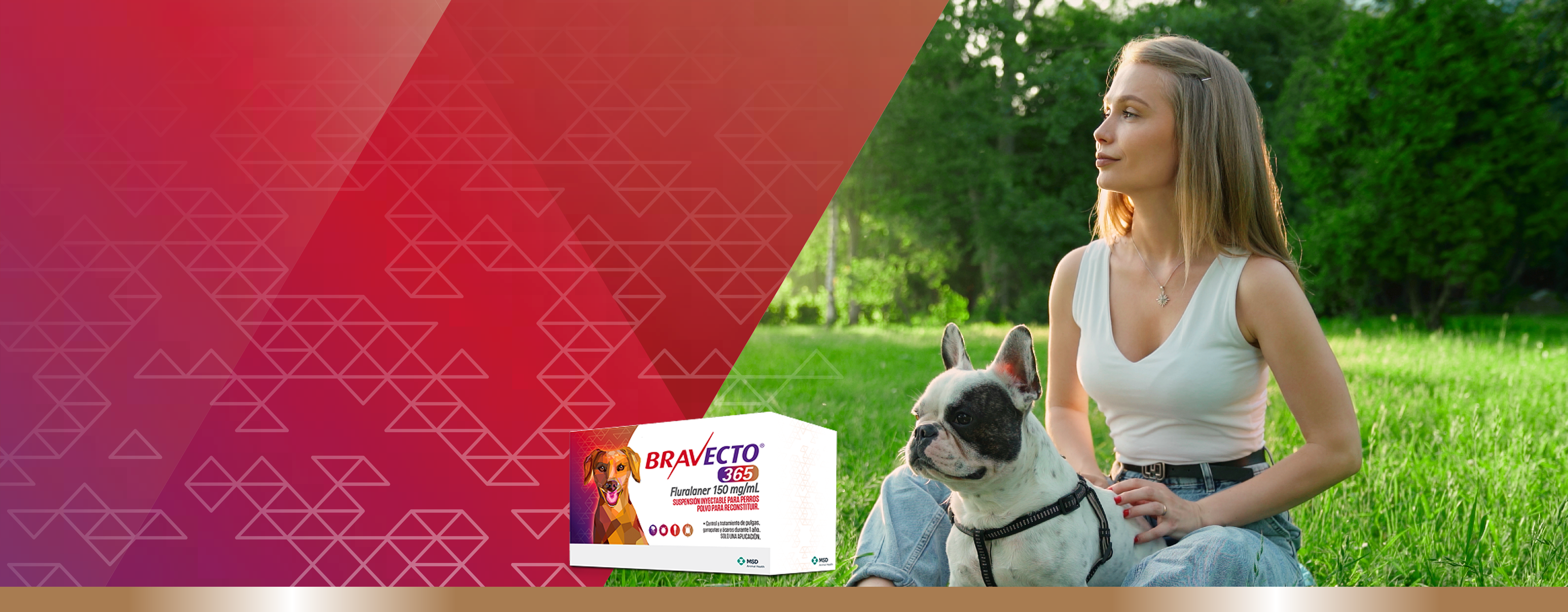 Bravecto® 365 mantiene a tu paciente perruno libre de pulgas, garrapatas y ácaros con una sola aplicación.